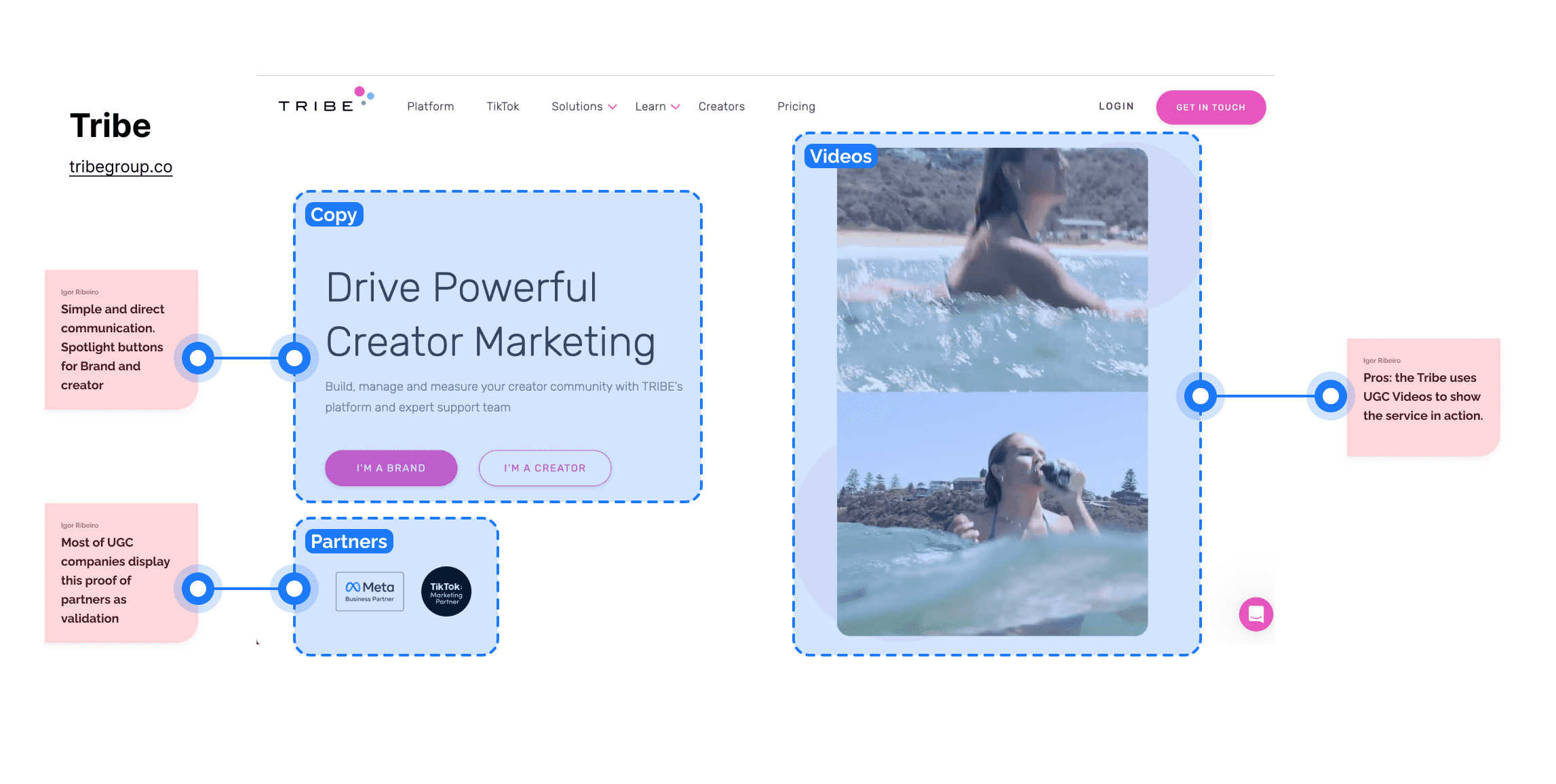 (tribe and influee) and their respective landing pages.