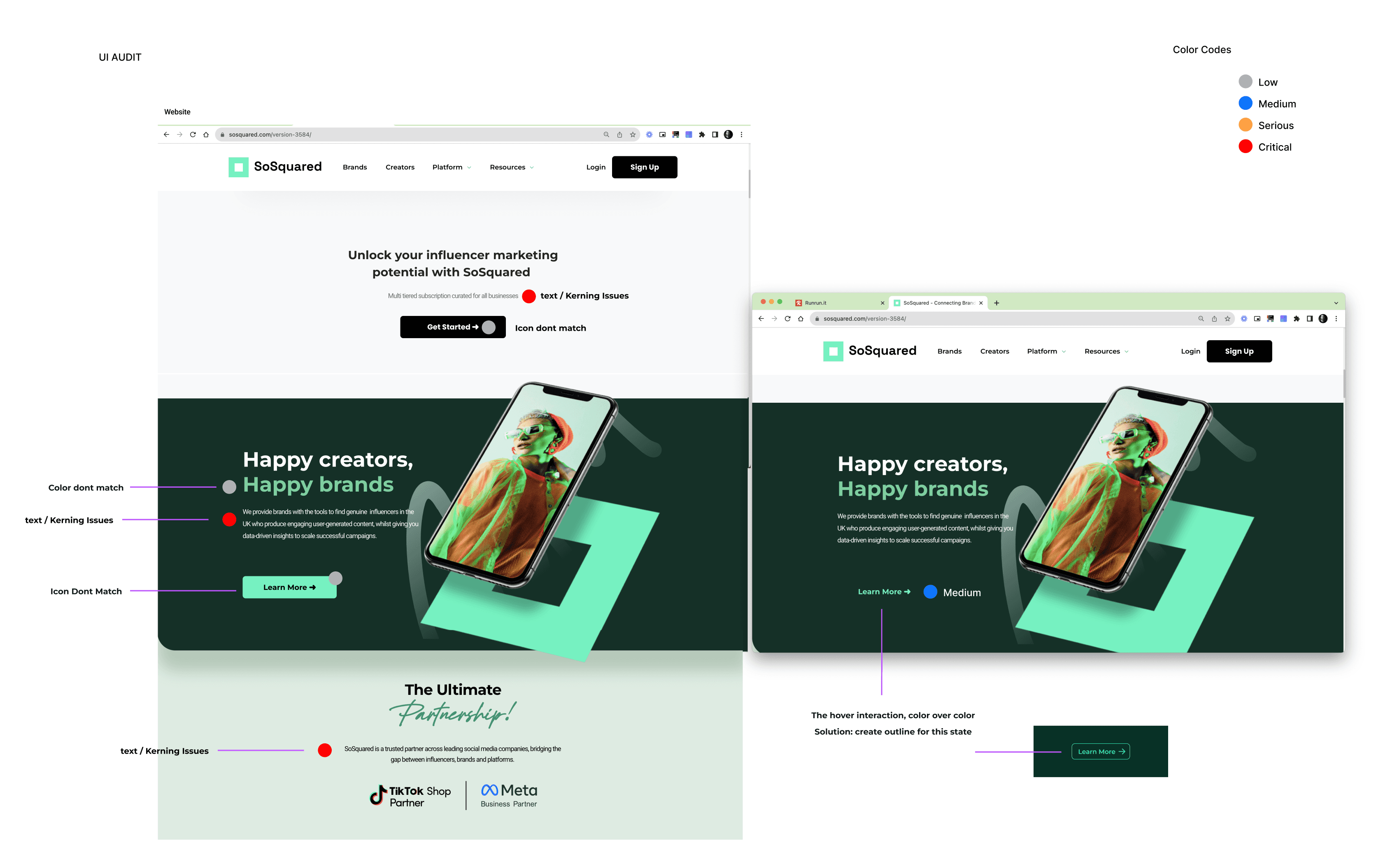 Before the deployment, I was invited to Audit the new website and highlight the gaps from the prototype in Figma to the final product.